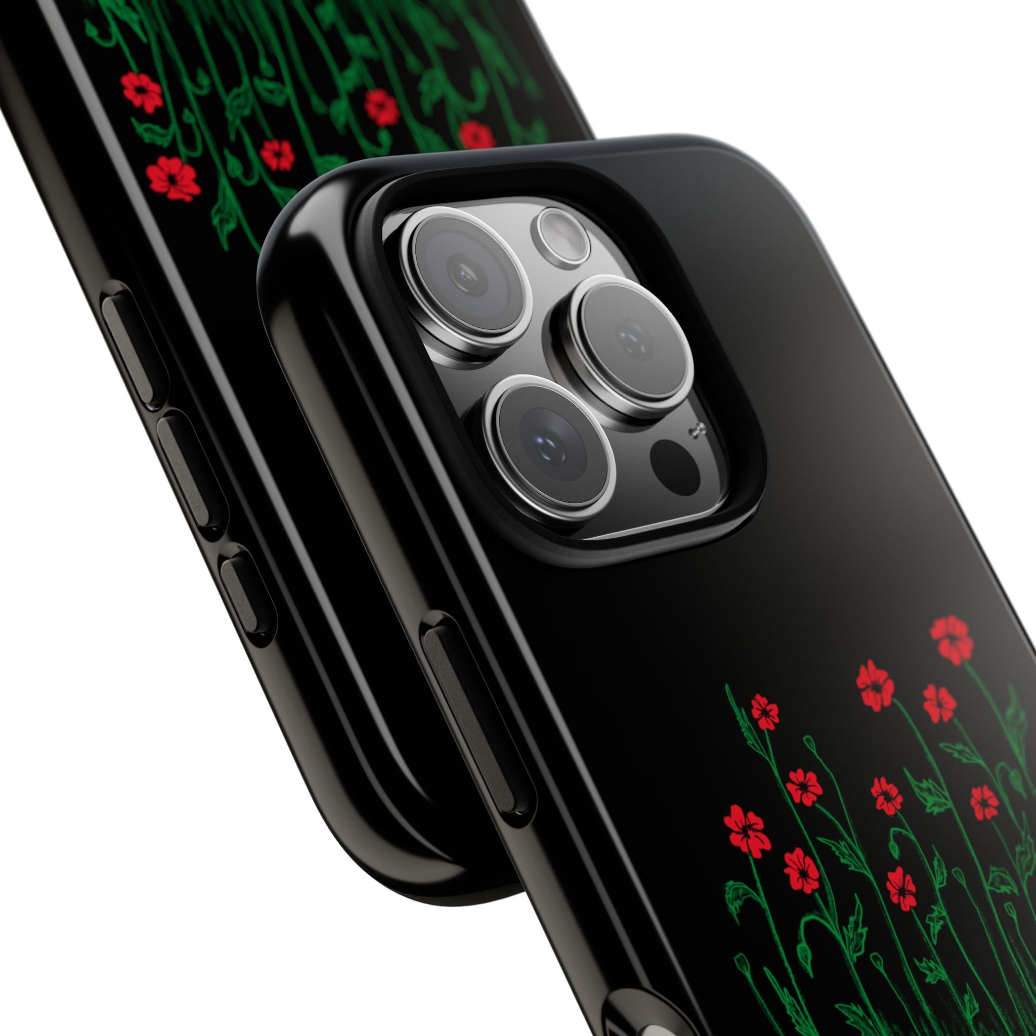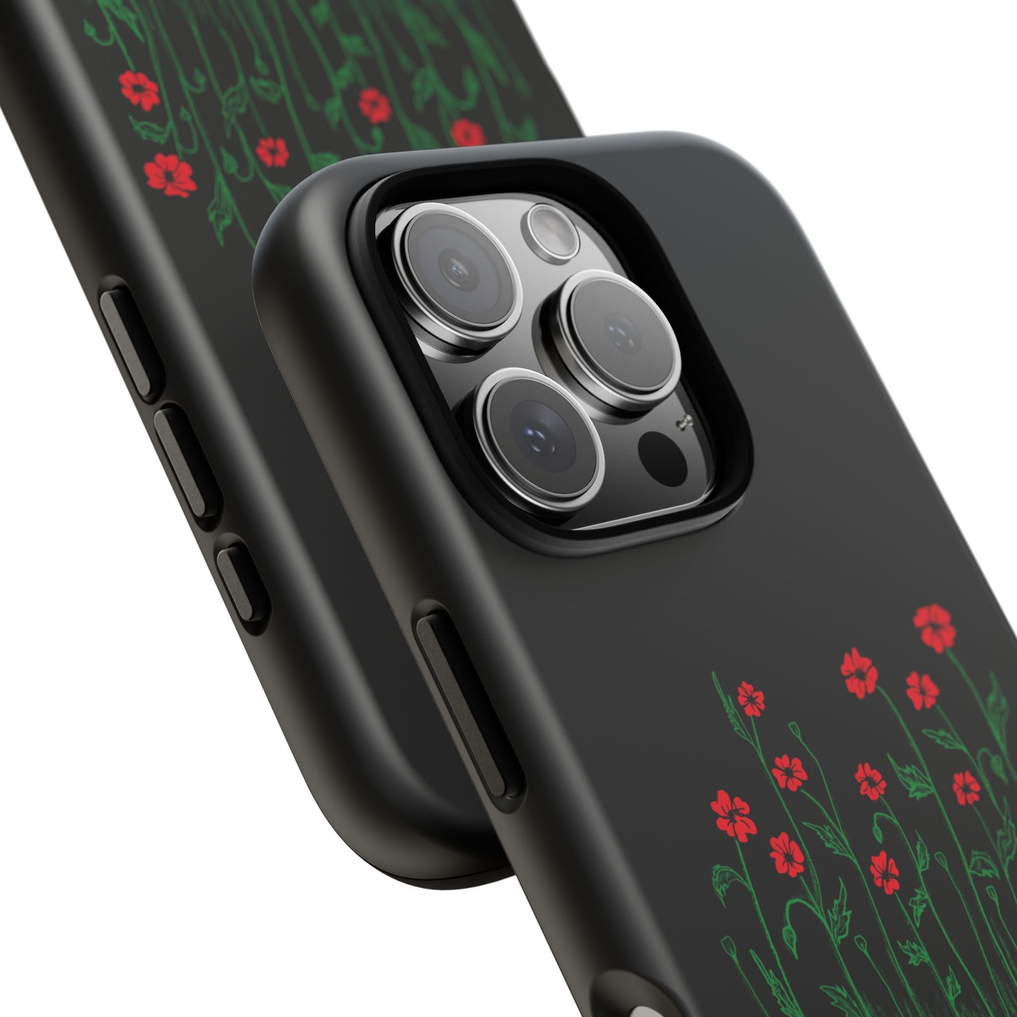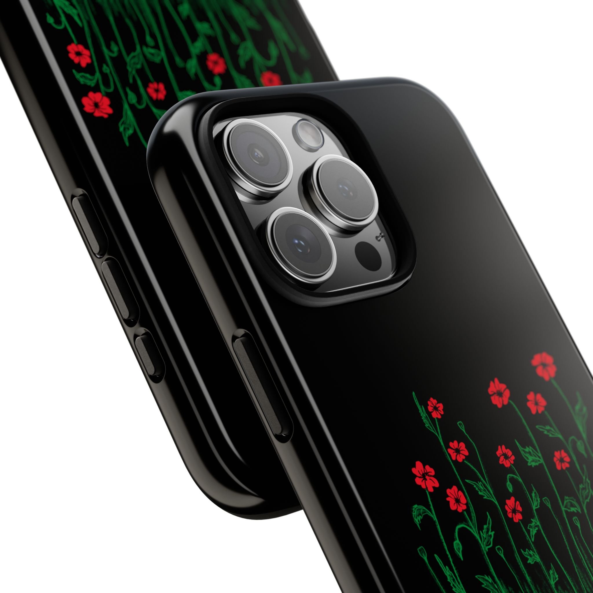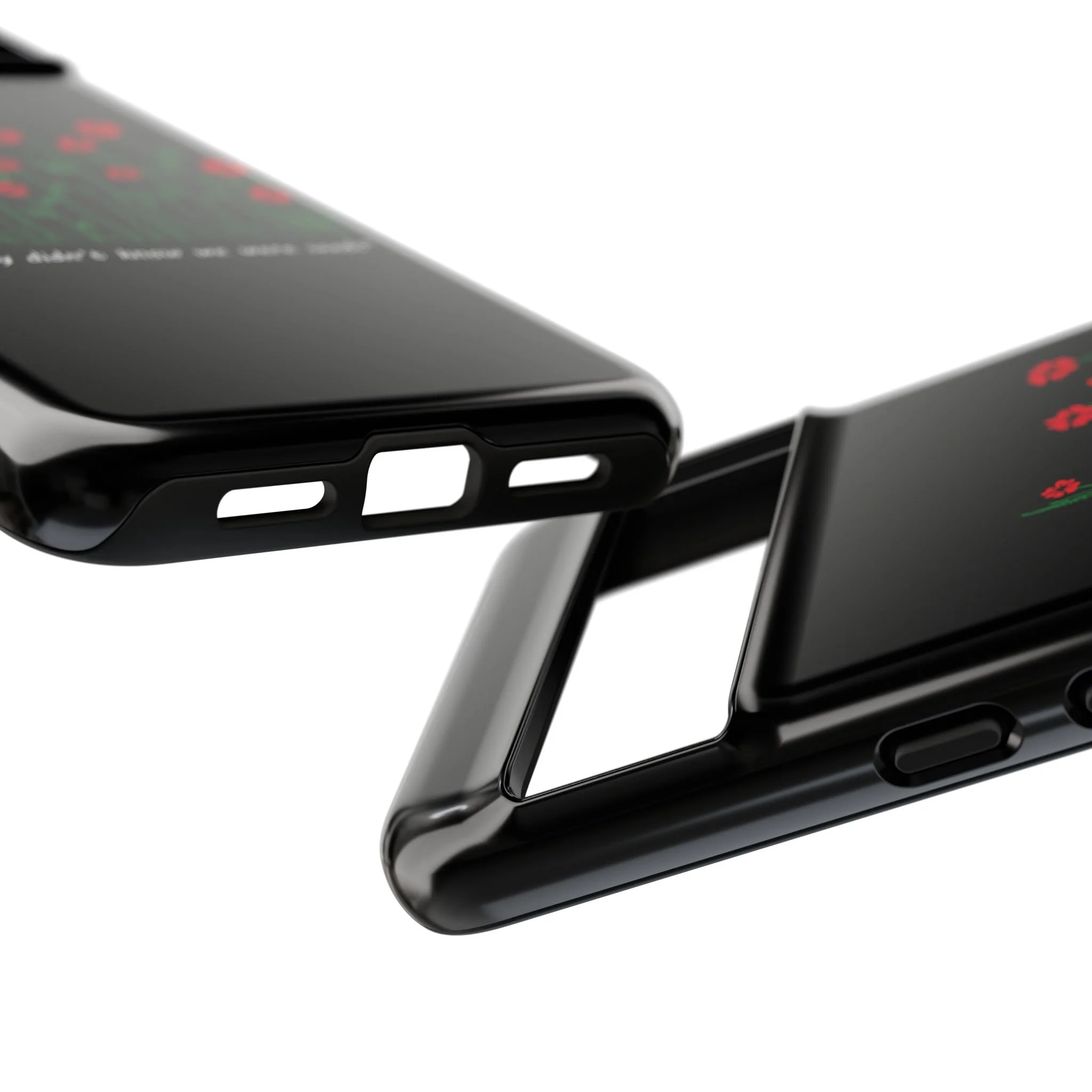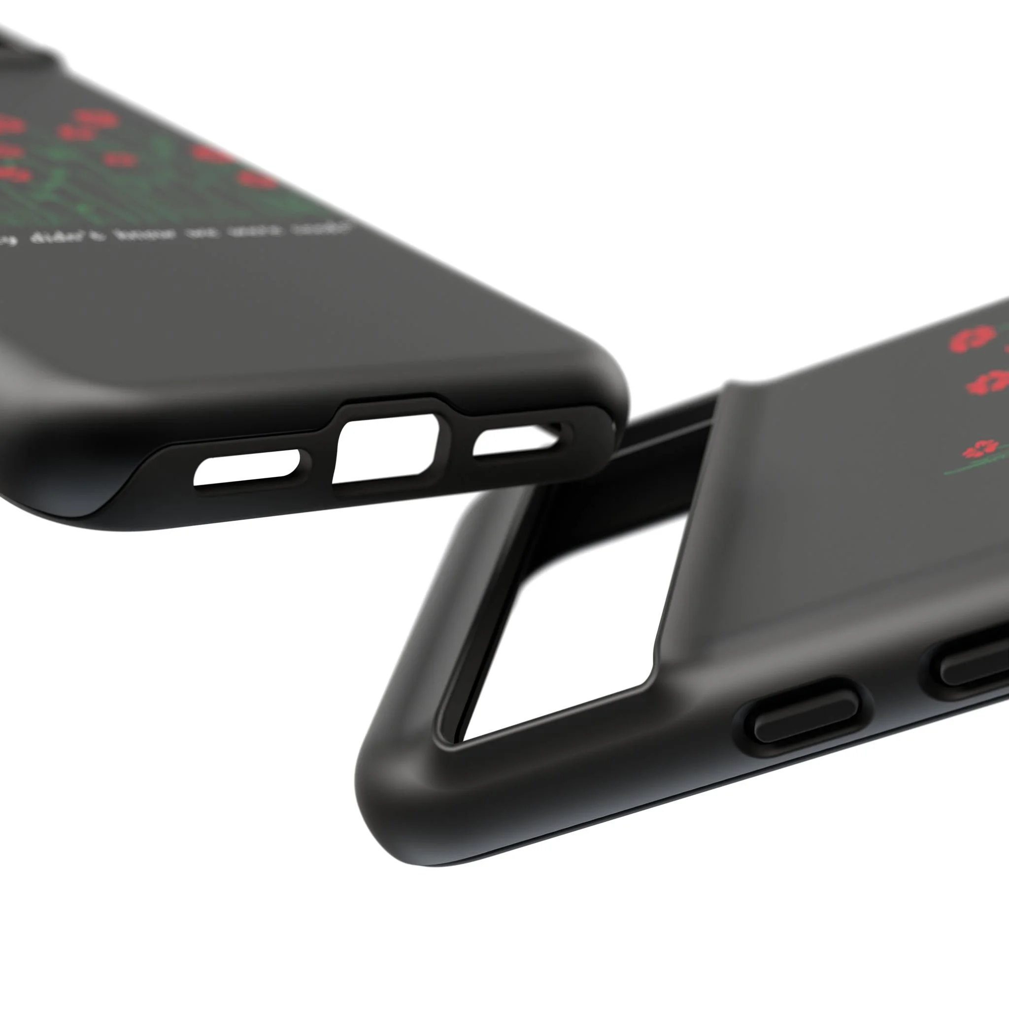 A slim, dual-layer phone case that carries a quiet, defiant charm — delicate red blossoms rising against a deep black backdrop with the small, resonant line: “...they didn’t know we were seeds.” The glossy or matte finish lets the rich 3D-wrapped print stand out while the TPU silicone inner liner cushions daily bumps and drops. This case keeps your device looking artful and guarded: clear cutouts for ports, wireless charging compatibility, and outdoor-resistant UV protection maintain the image and function through everyday use. Thoughtful compliance and durable materials make it a reliable everyday companion for someone who finds strength in subtlety. Speak truth to power with this powerful message. Please reach out if you don't see your phone type and it will get added.